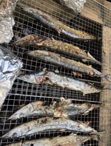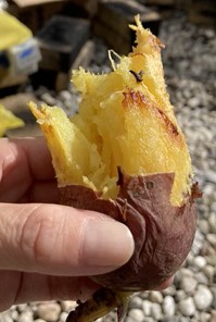 釜で焼くサンマのお味は? ブログ 2025.10.29 数年前に敷地内にピザを焼くための釜を作りました。そこでピザを焼いたり、焼きいもをしたり、BBQに使ったり…いろんな場面で活用してきました。今日は園芸部さんが秋刀魚を焼こうと、朝から薪を準備したり、買い物に行ったり釜の準備をして、秋刀魚を焼きました。 先日堀ったさつまいもも一緒に焼き芋にしました。甘い、ほくほくの美味しいお芋さんです。みなさんニコニコでした。