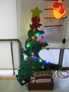 昨年園芸部のみなさんが木片を利用してクリスマスツリーを作りました。