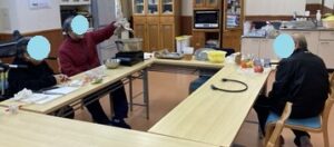 おでんは下ごしらえが必要ですよね。今回の参加者の3名は長時間立って調理など難しいので、栄養士さんがある程度準備を進めてくれました。煮込み時間は歓談タイムです。みなさん楽しそうにお話されていました。