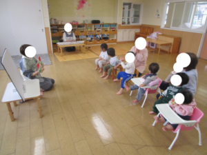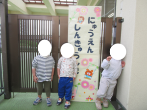 入園、進級式をしました🌸 ブログ 2026.04.02 4月1日(水)に入園、進級式を行いました。パネルシアター『いぬのおまわりさん』を見たり、チュウリップの歌を歌ったりしました。犬や猫のイラストが出てくるのを指さしてみたり、一緒に歌を口ずさんだりして喜んでいました。新入園児や新しい先生を紹介しました。各クラスごとに看板の前で写真を撮りました。ちょっぴり緊張する、にっこりと笑顔をみせる様々な表情の子ども達でした。1年間楽しく過ごしていきたいと思います。