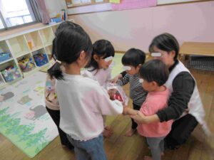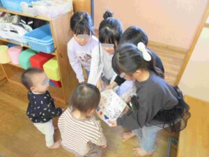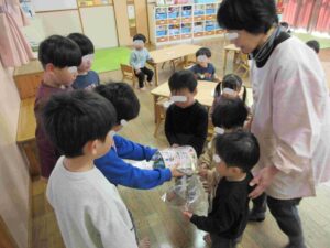 また、年長児から各クラスへのプレゼントは手編みの手提げバックです!みんなで大事に使いたいと思います♡