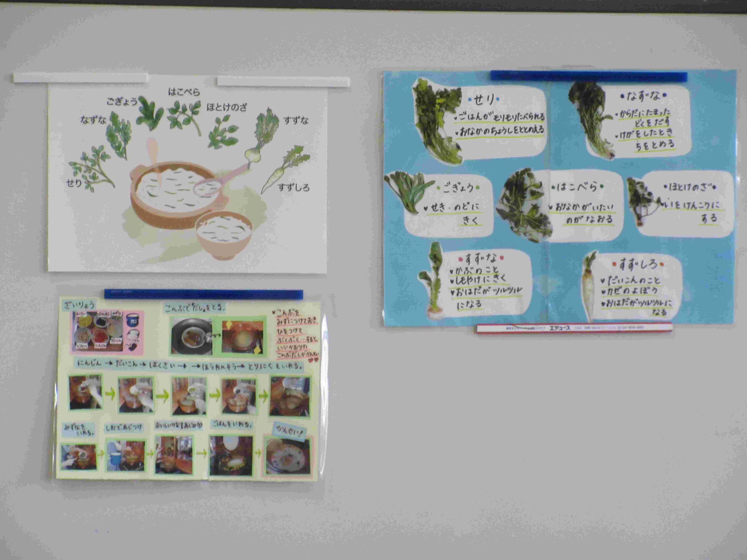 お部屋に戻ると、集会で知った七草を「せり、なずな、はこべら・・・」と友達と一緒に言ったり、教え合ったりする姿がありましたよ。