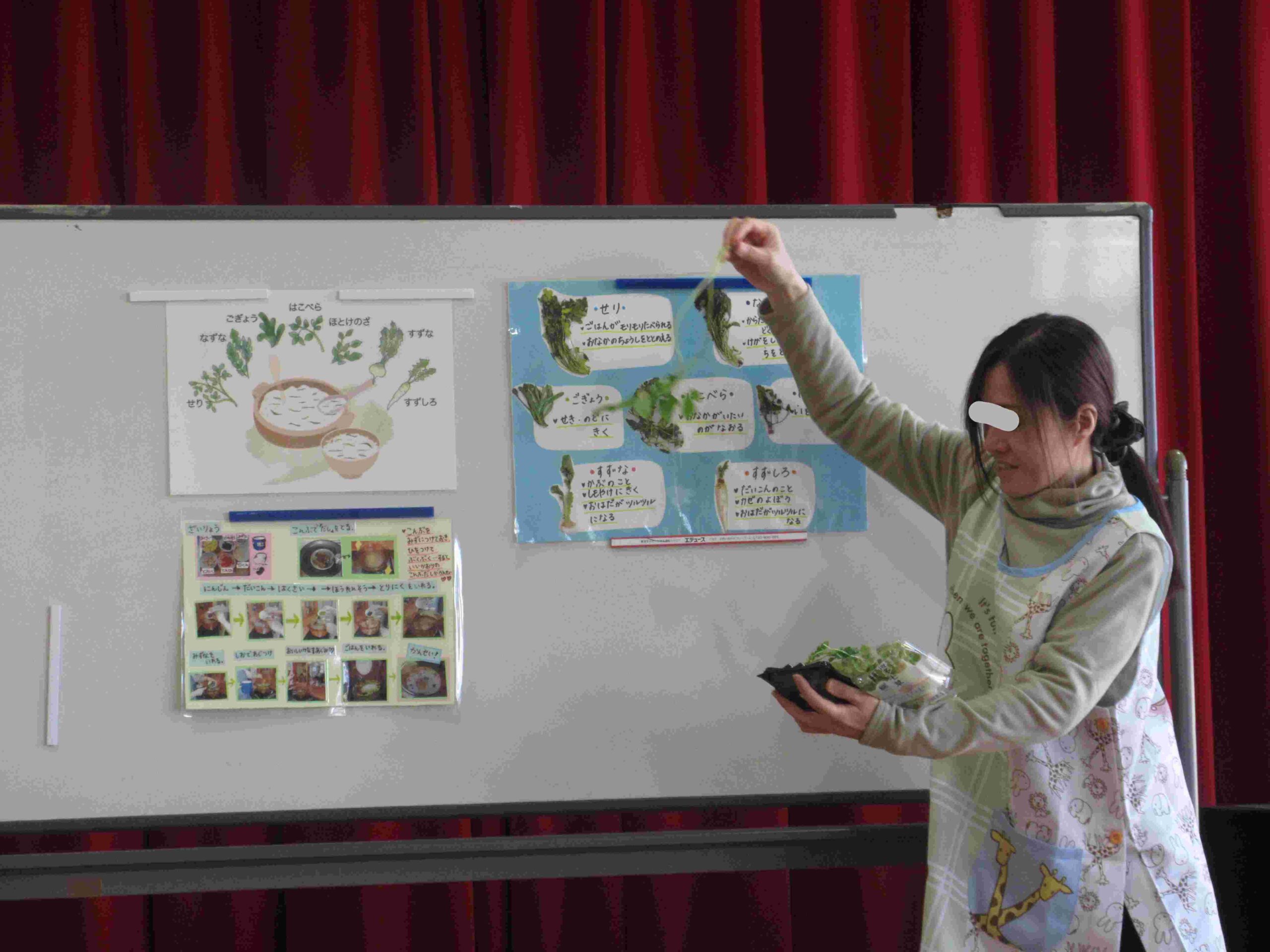 お正月でたくさんご馳走を食べたお腹を休めるために七草がゆを食べることや七草の名前や意味を話すと「へえ、そうなんだ」と真剣に聞いていました。