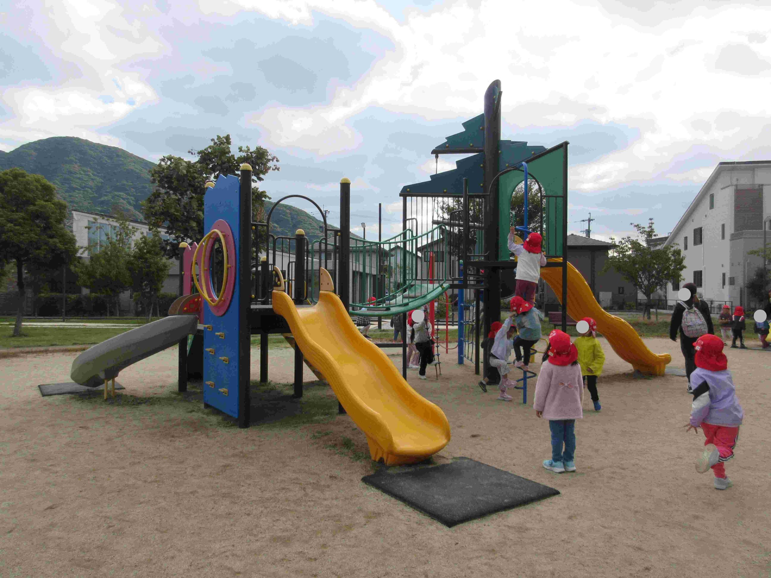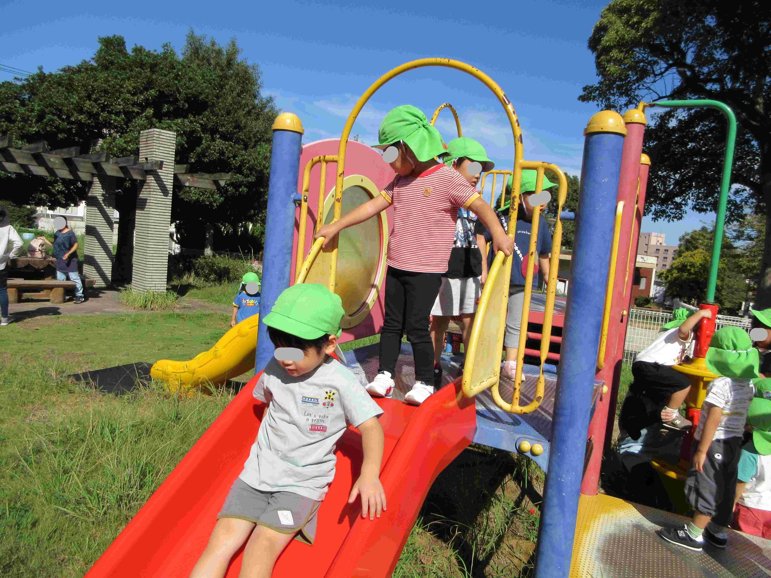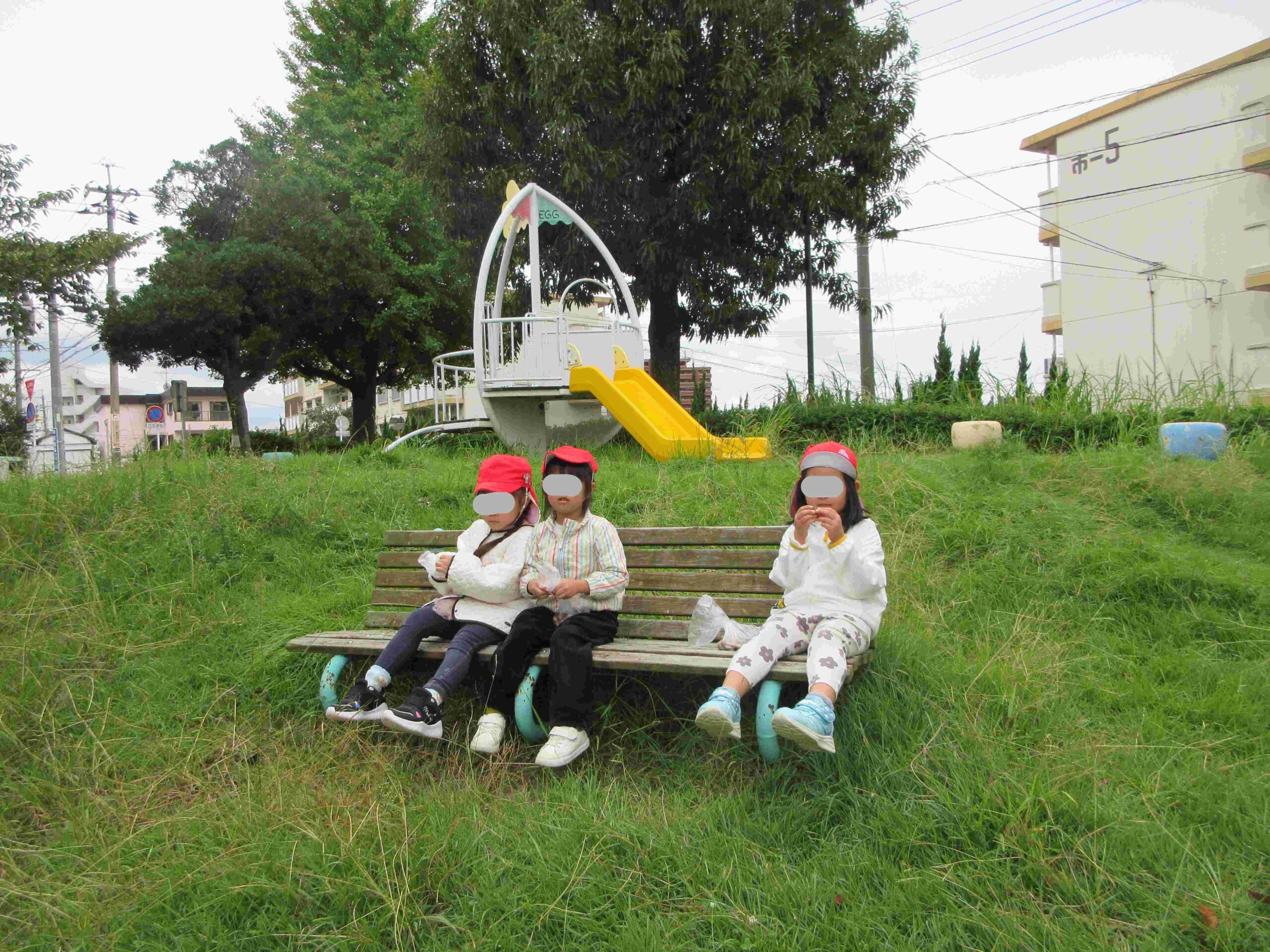 22日(æ°Ž)に4歳児の遠足予定でしたが、倩候が悪かったので、3歳児ず同じ公園に行きたした。