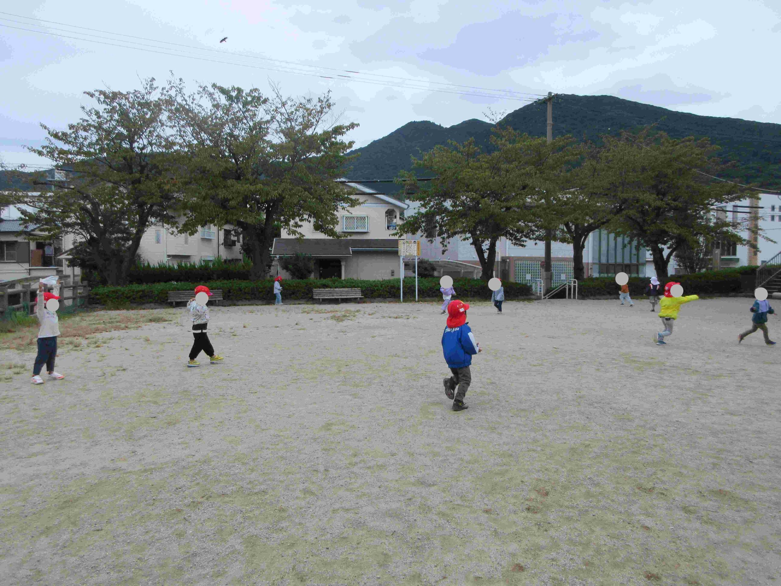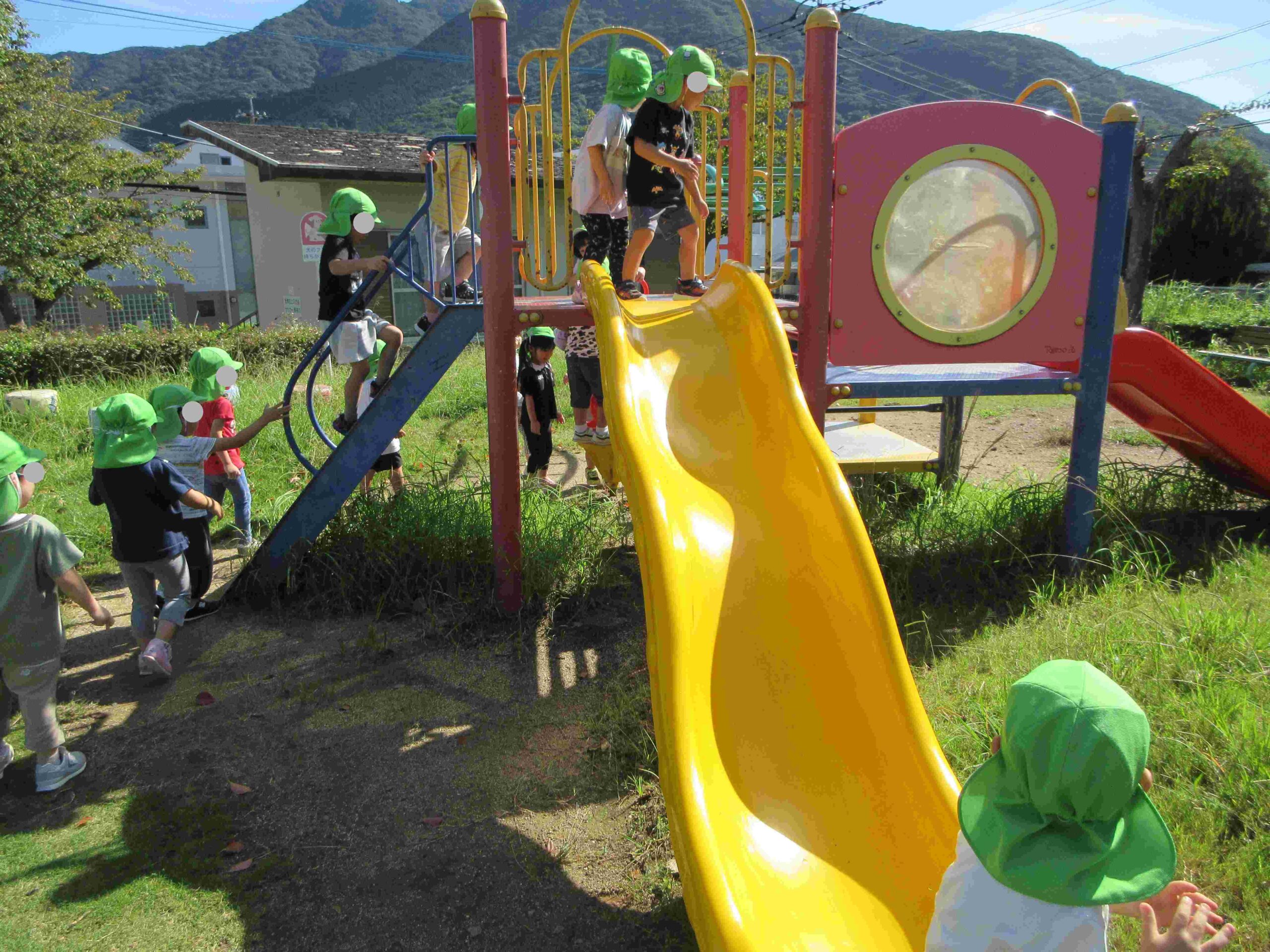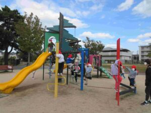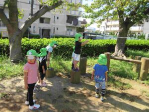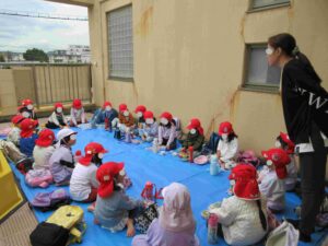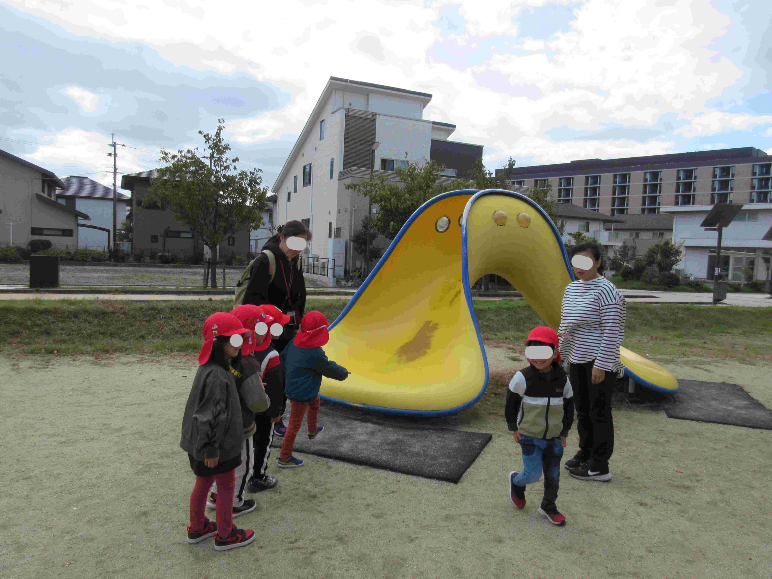 22日(æ°Ž)に4歳児の遠足予定でしたが、倩候が悪かったので、3歳児ず同じ公園に行きたした。
