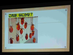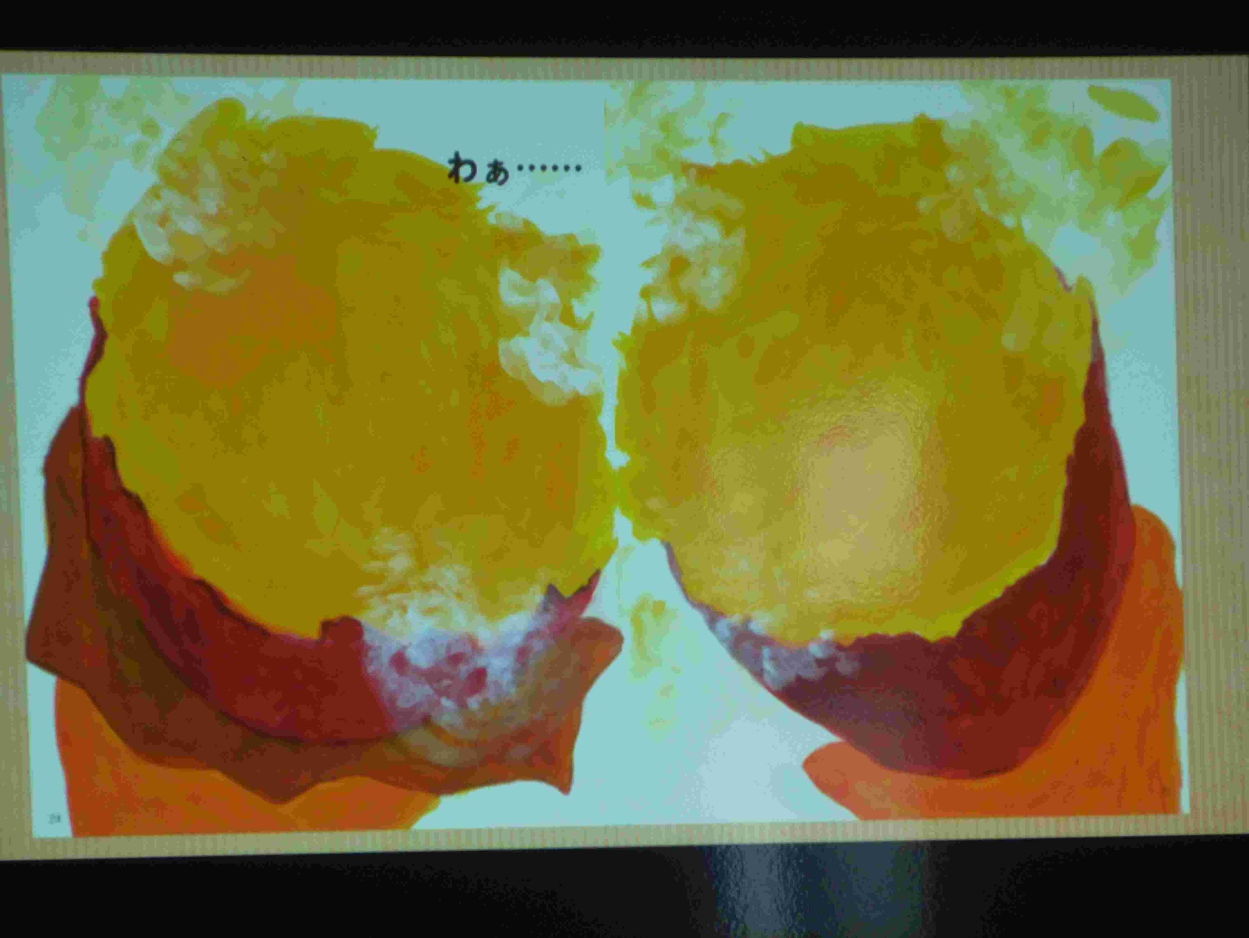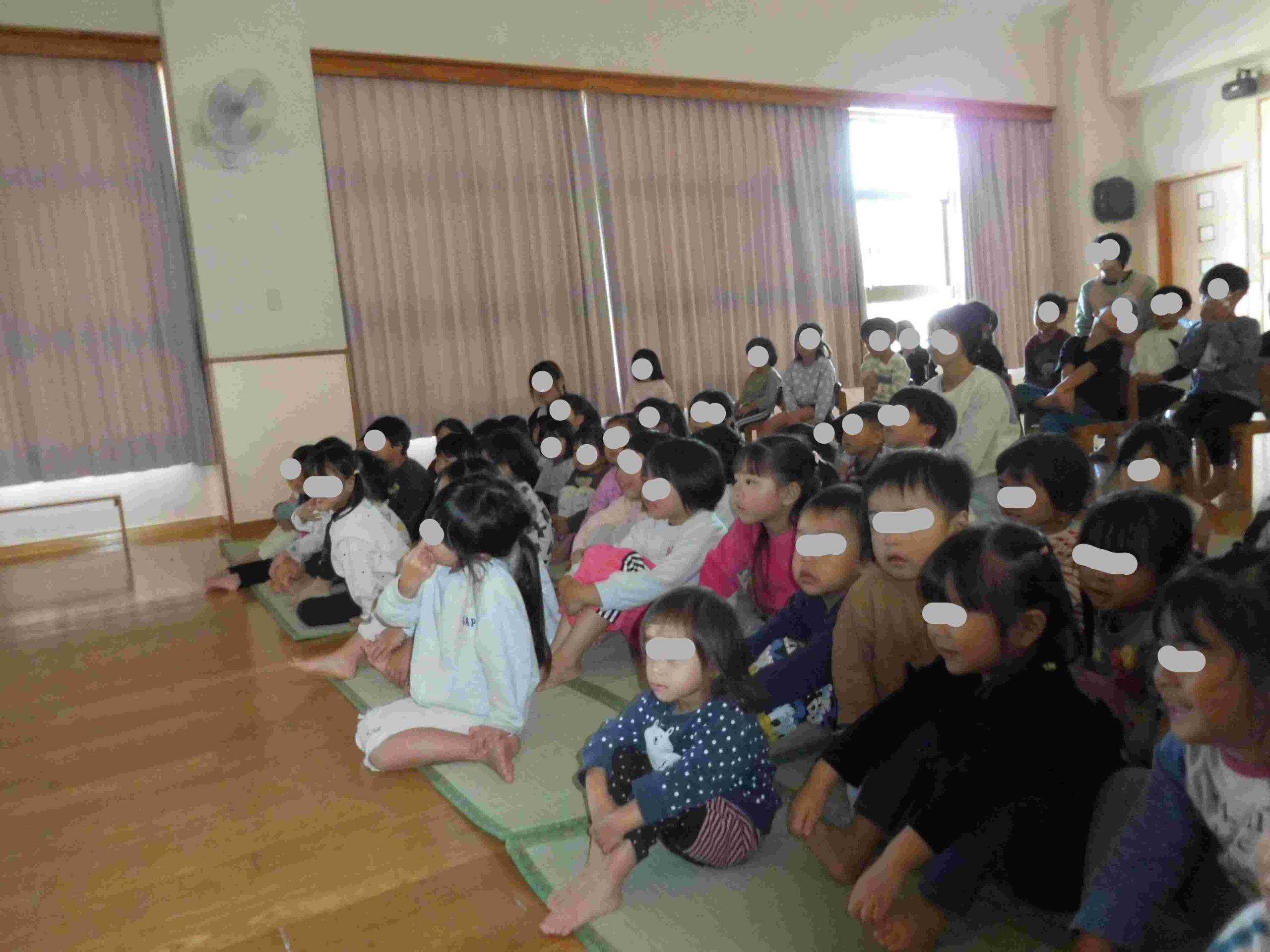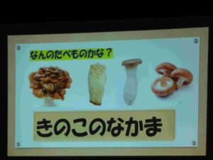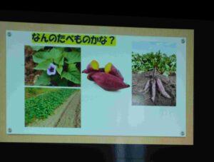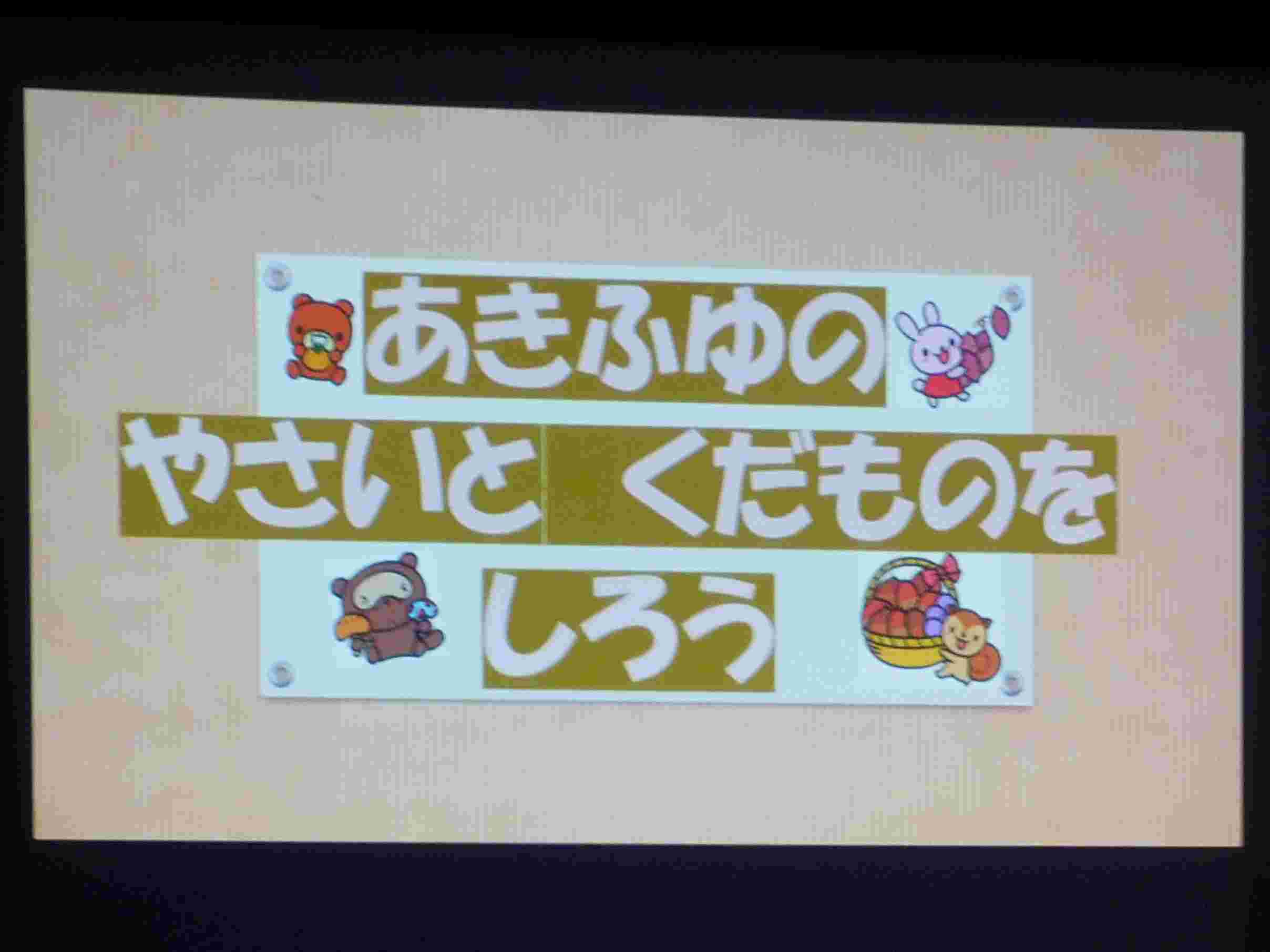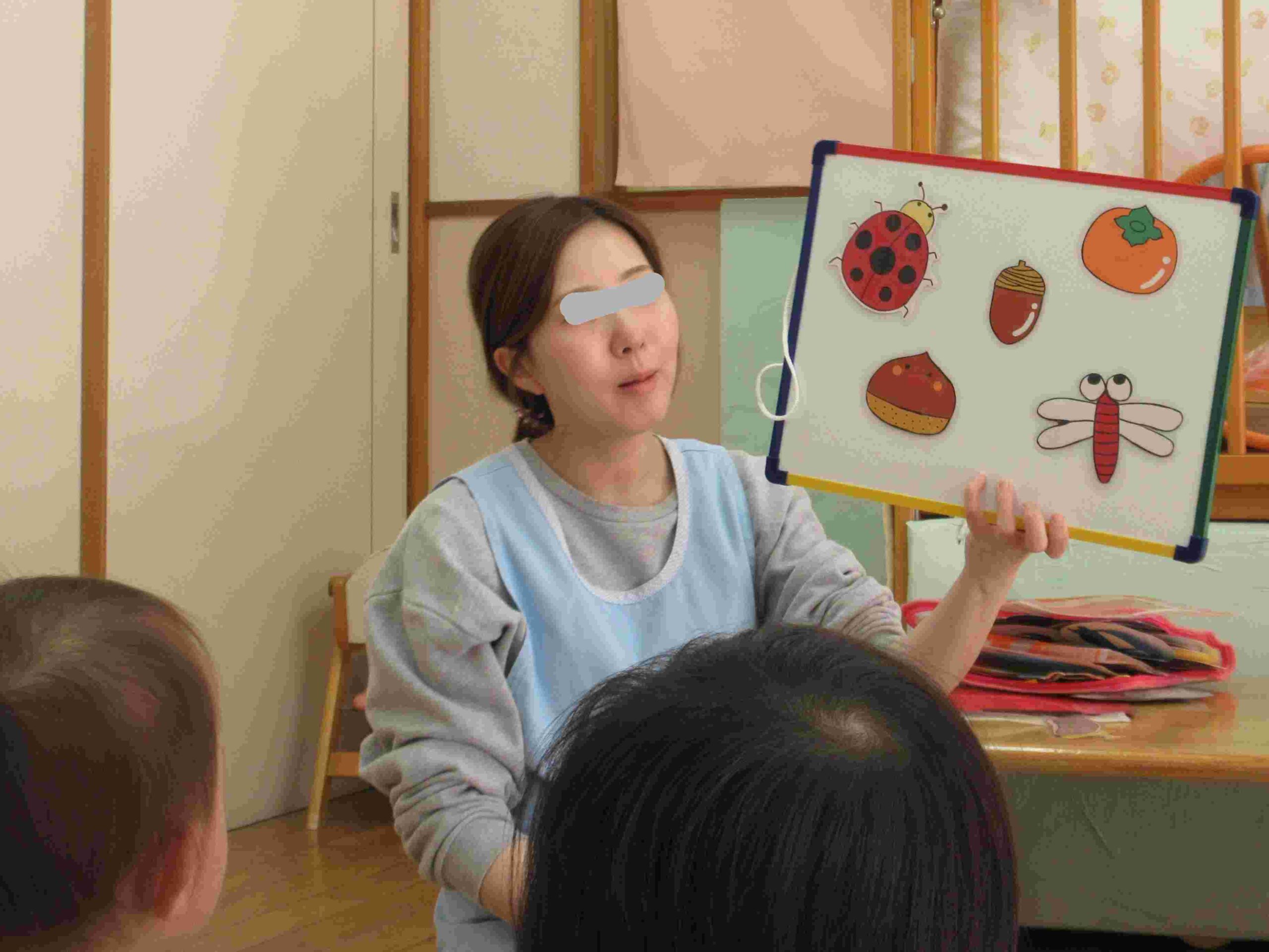 11月の誕生会🍰 ブログ 2025.12.02 11月14(金)、11月の誕生会を行いました。誕生児のお祝いの後、8月の食べ物クイズと同じように、今回は『秋の野菜と果物を知ろう』というテーマで、パワーポイントを使って、クイズをしました。 『やきいもどーん』の絵本も喜んで見ましたよ。0・1歳児は、保育室で秋探しのクイズをしました。保育士のパネルシアターに夢中でした💛